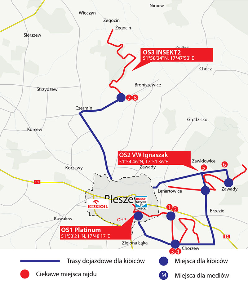 Mapy ODCINKÓW SPECJALNYCH wraz z miejscami wyznaczonymi dla kibiców oraz harmonogram czasowy w informatorze rajdowym dostępnym już od piątku na rynku i strefie serwisowej.